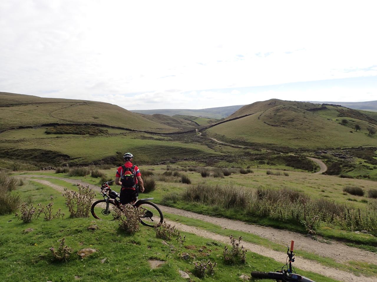 The ascent out of Lumb was initially steep and rocky up to the side of Cragg quarry. There is a lot of old double paved track in which you can see ruts carved by the carts. As we descended towards Rochdale we were well and truly shaken and stirred by the cobbled track. The route back to Watergrove should have been uneventful but our battery levels were by now very low and with about a mile to go my mate's battery was empty.