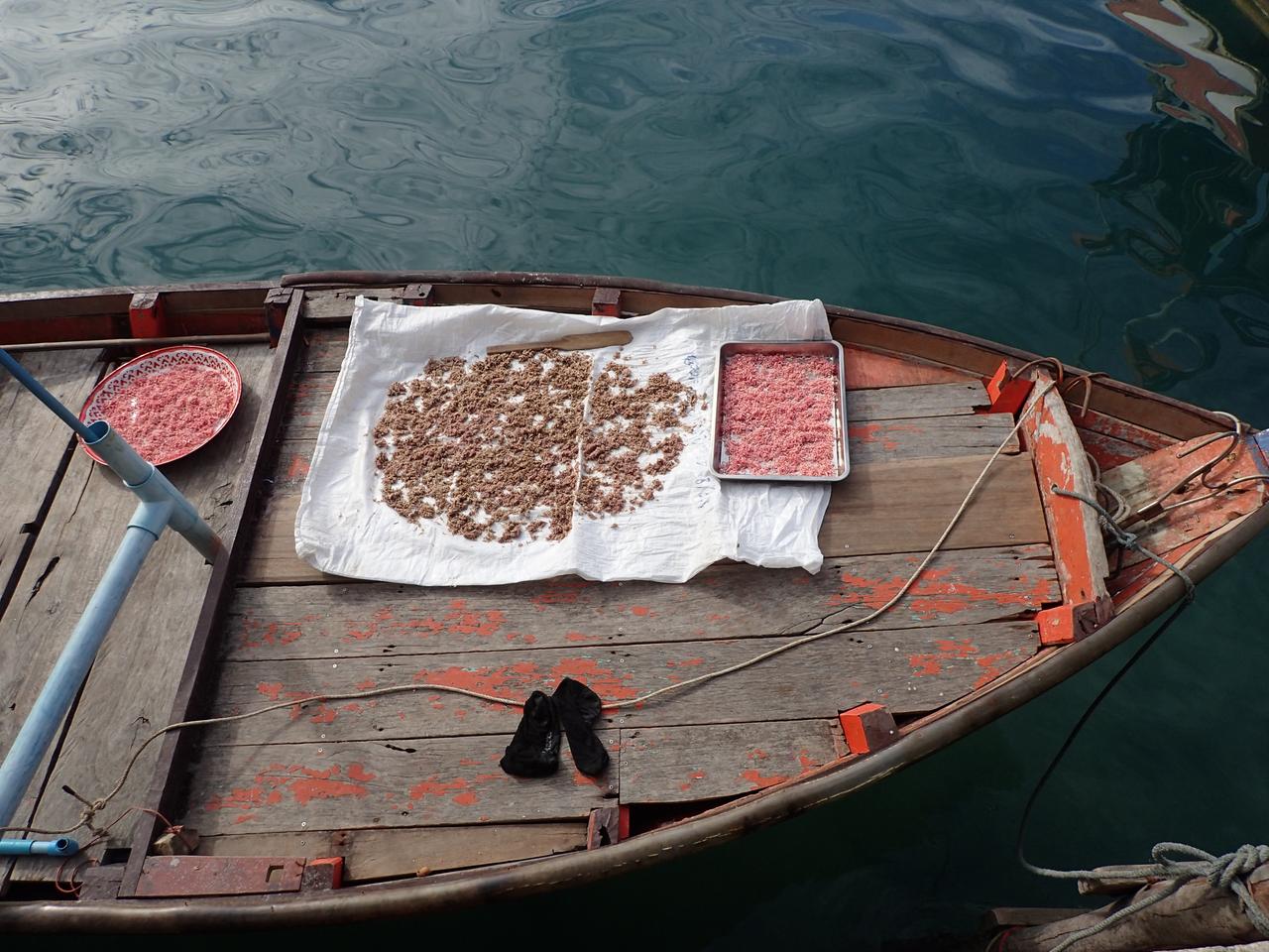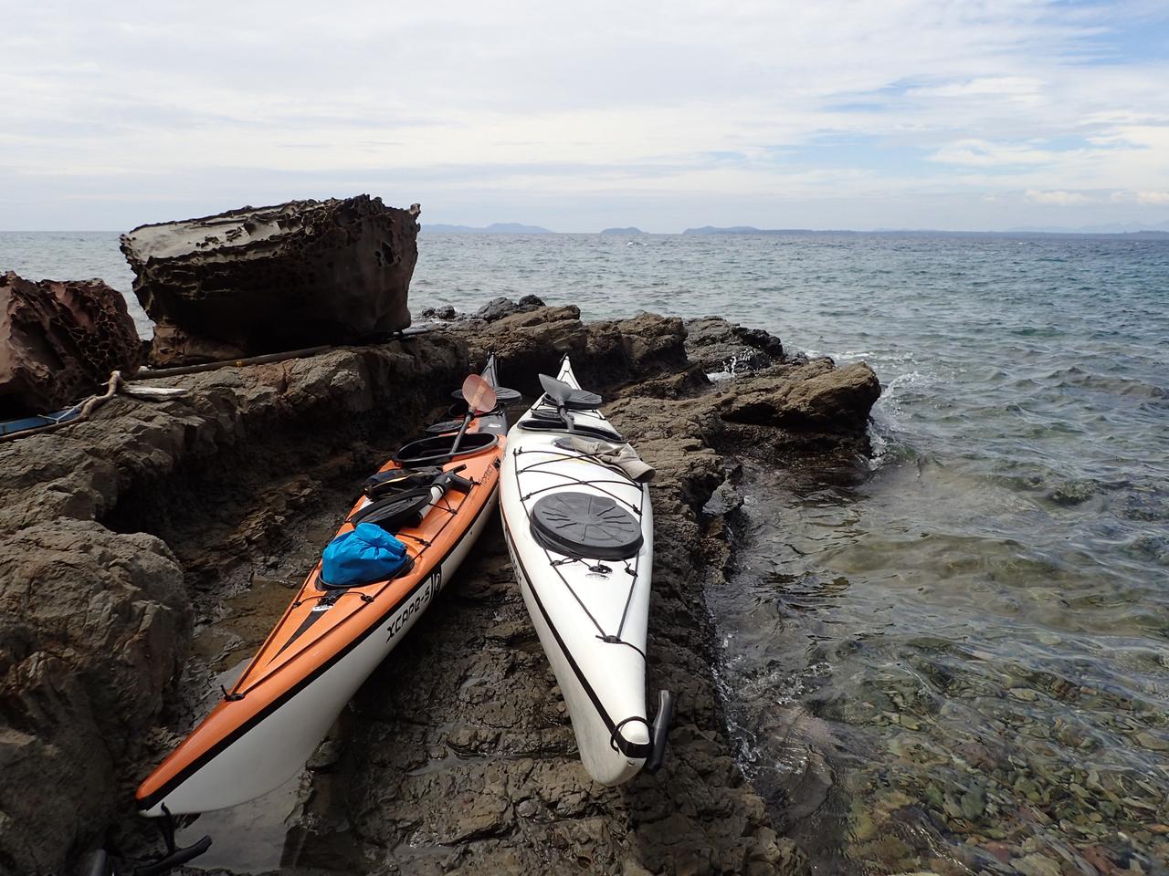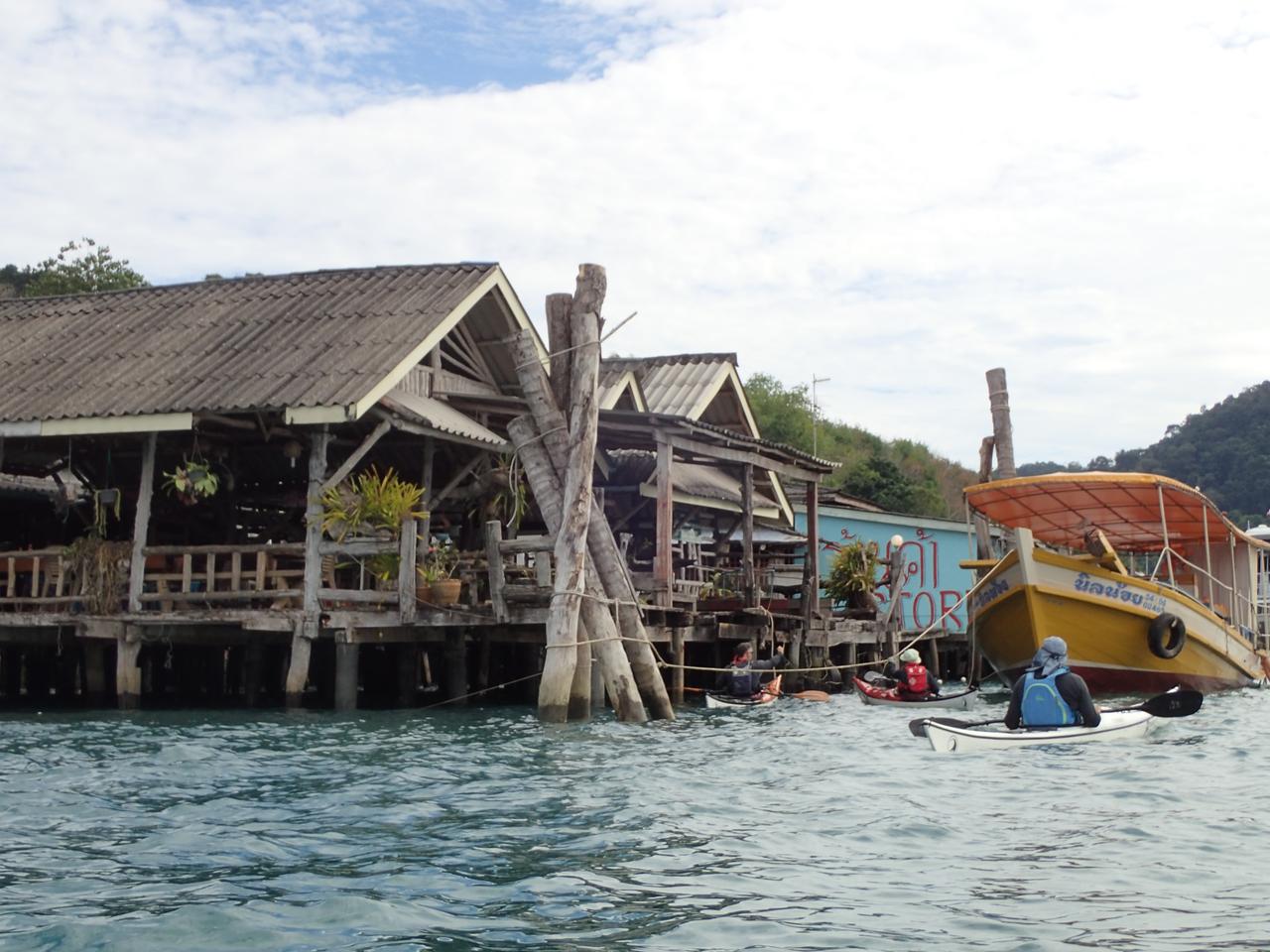 The kayaks had to be lifted over the boat to the homestay behind