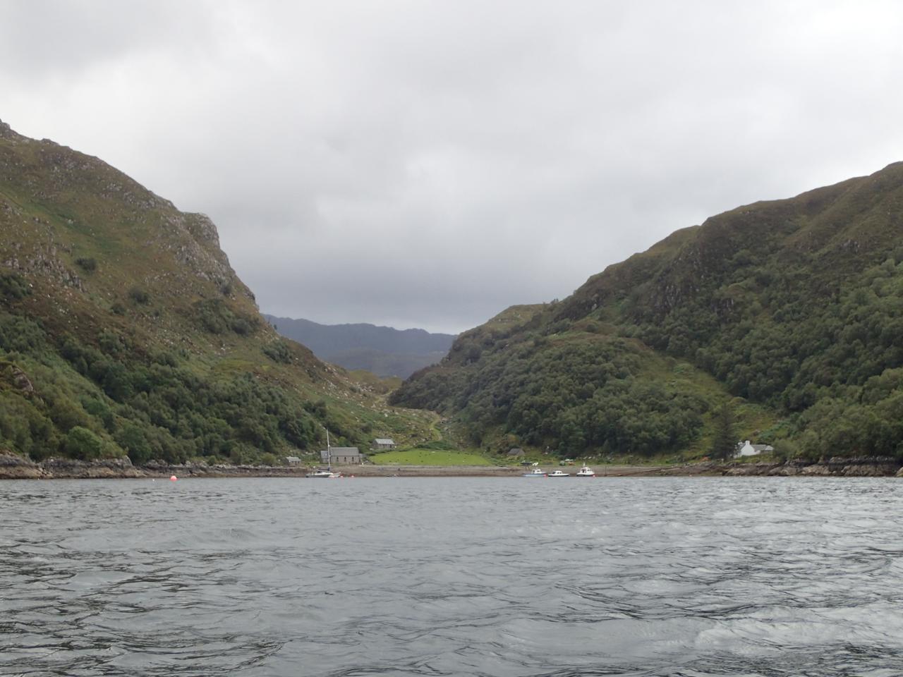 The forecast was bad for Thursday night and through Friday, so we headed up Loch Nevis to seek shelter. Passing Mallaig.