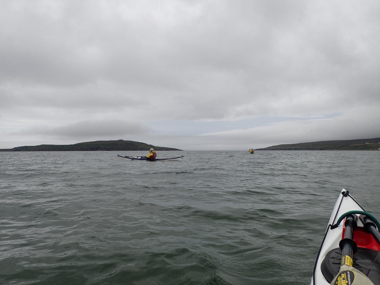 Departing on a murky morning west to Longa Island.
