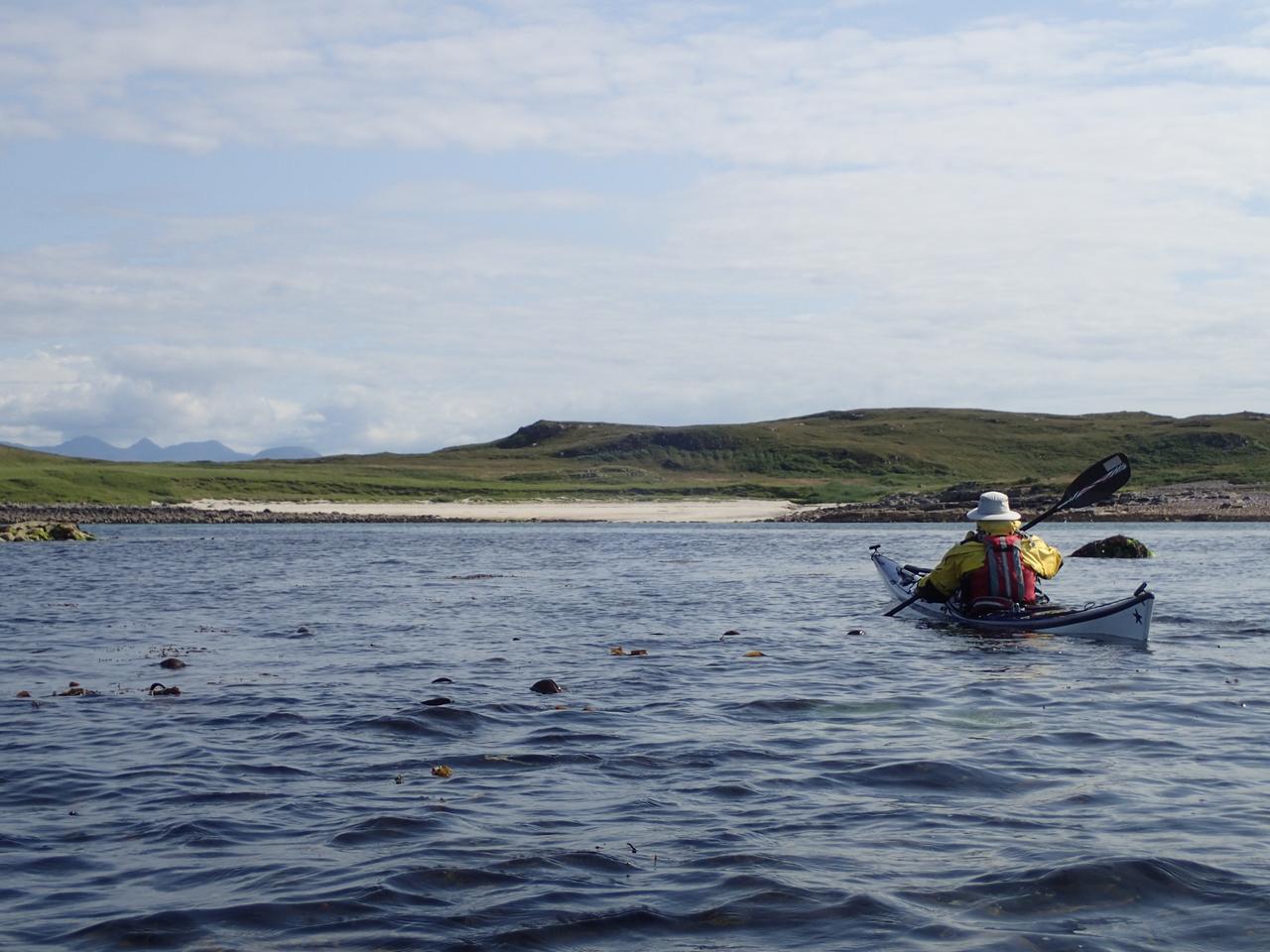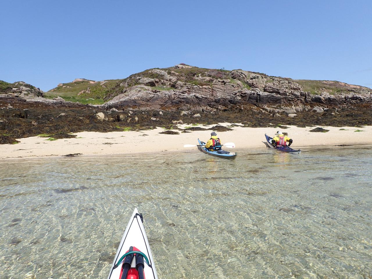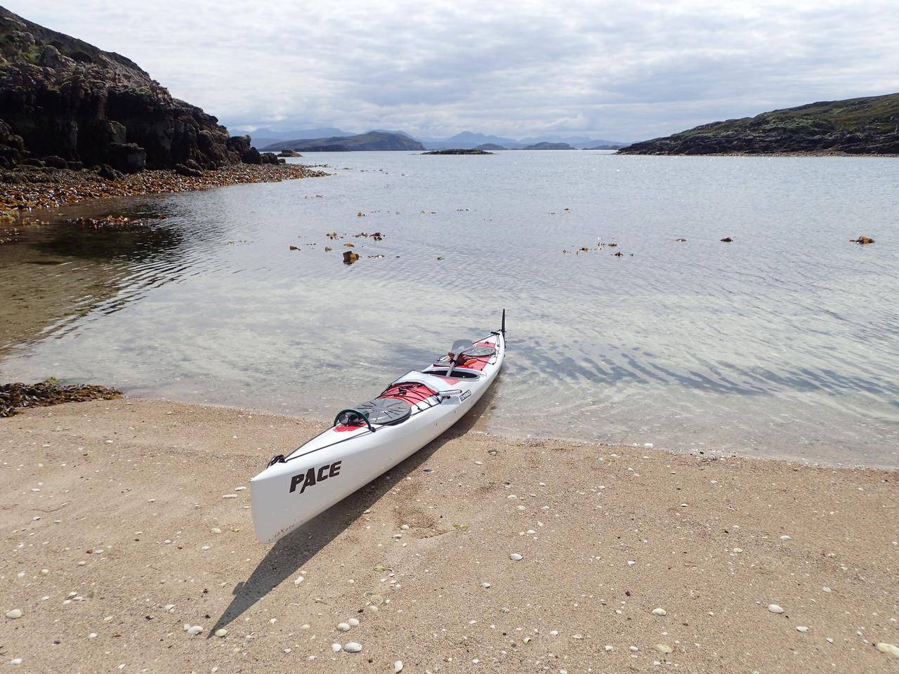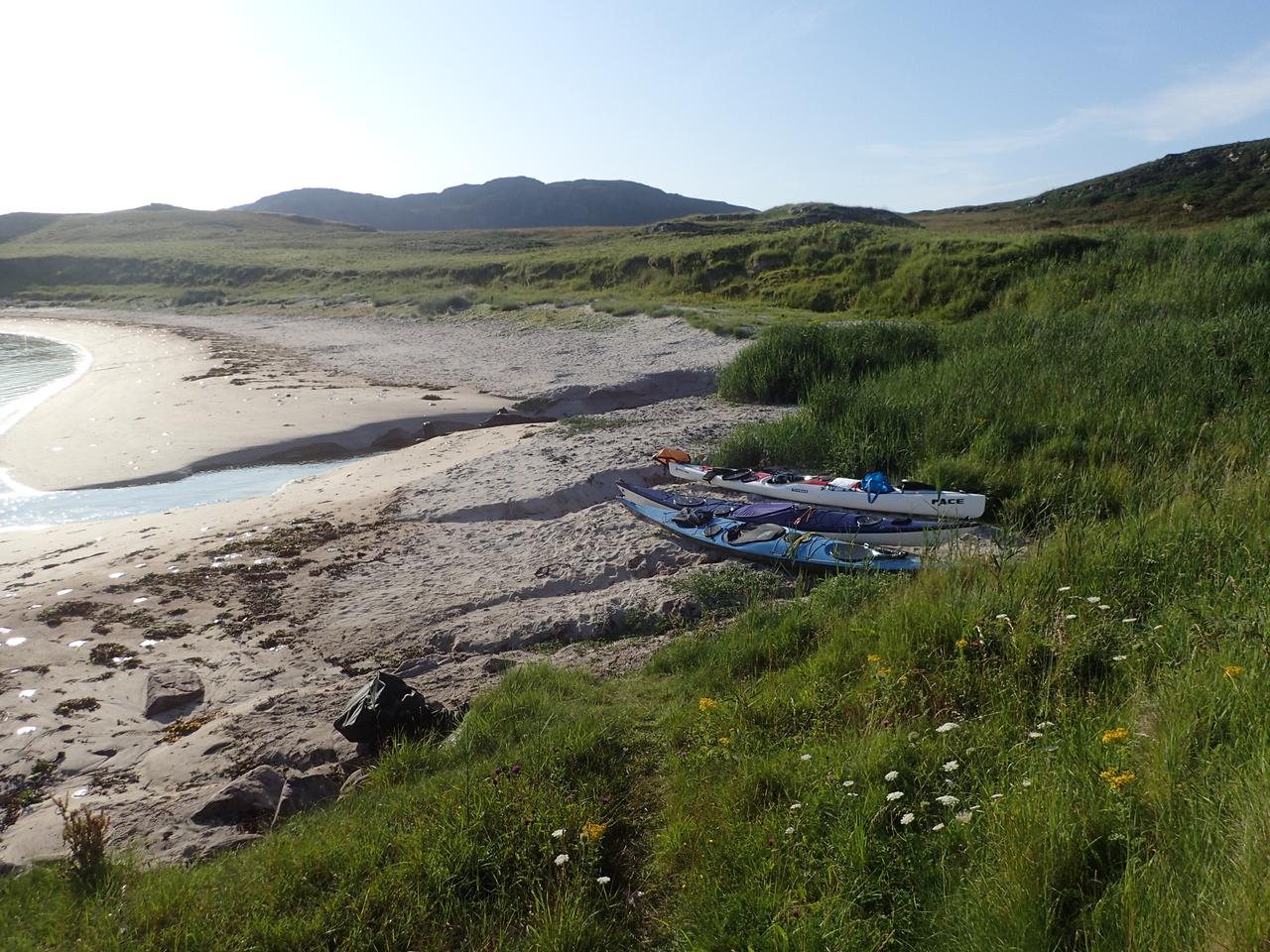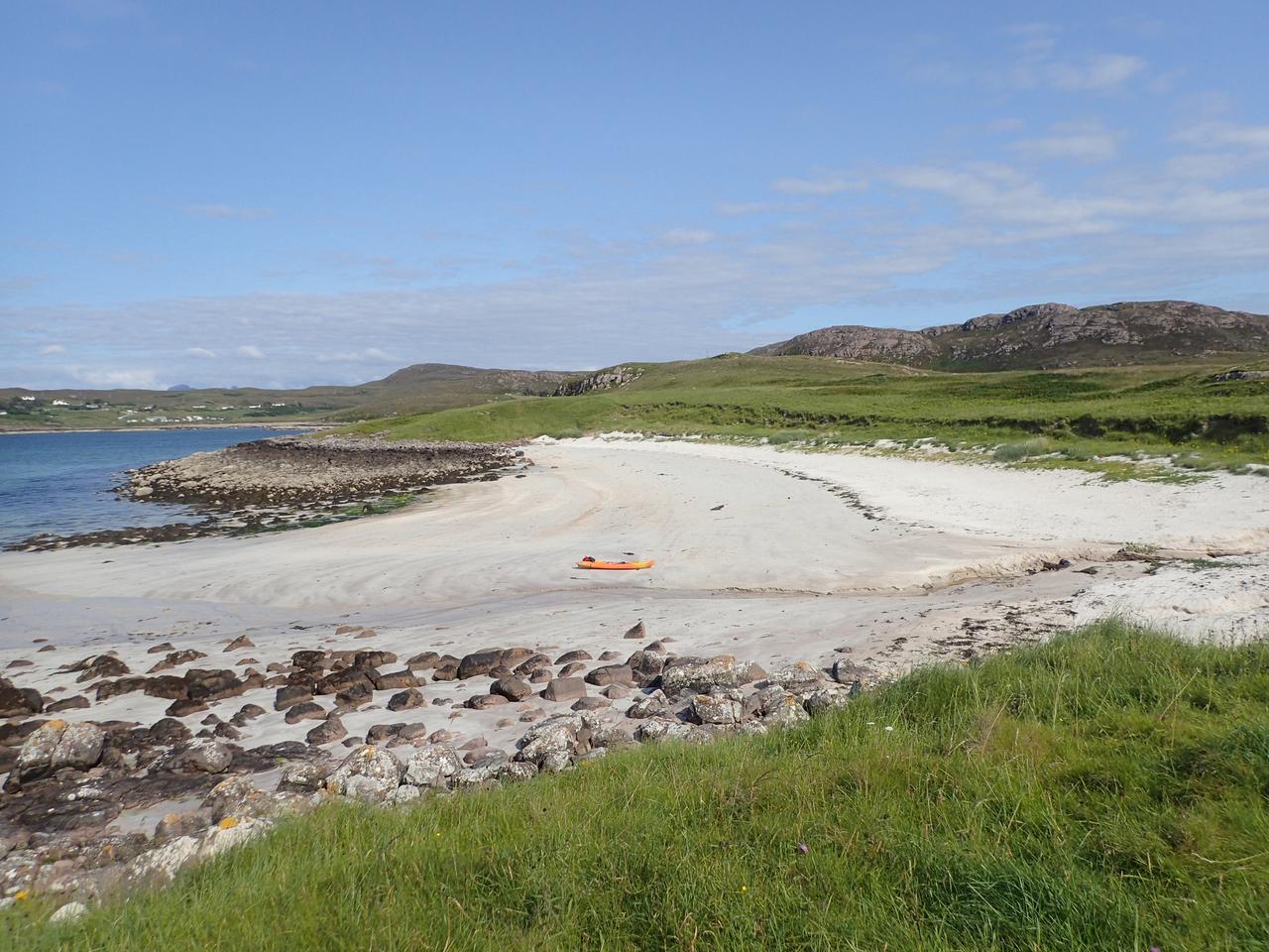 A small sandy beach for lunch on Eilean Fada Mor. Sandy beaches like this are few and far between in the Summer Isles.