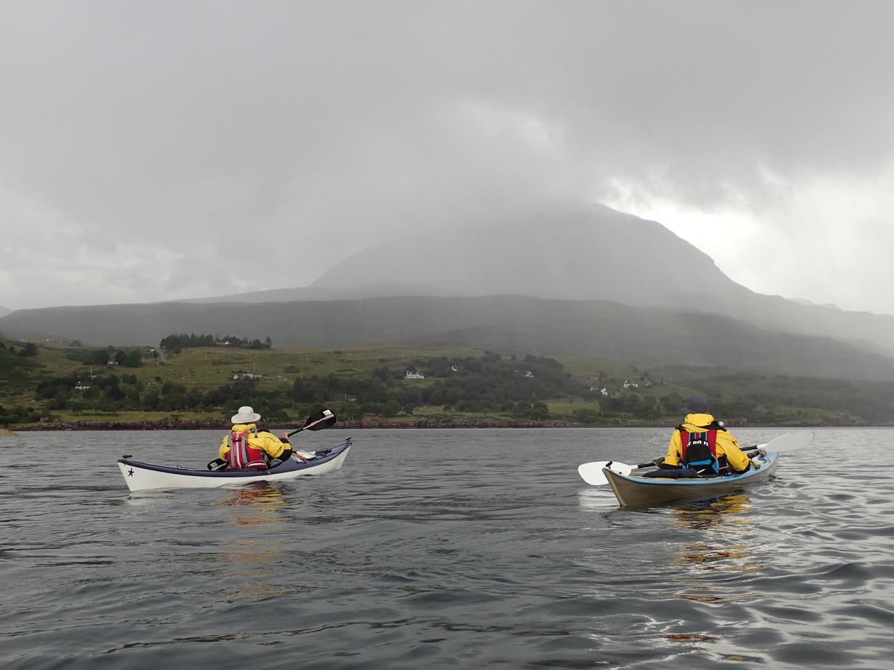 We pitched our tents then went for a paddle into Upper Loch Torridon, rain was gathering in the surrounding mountains and we were soon in the thick of it.