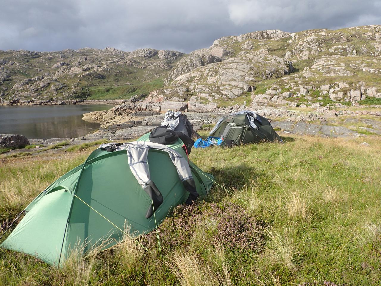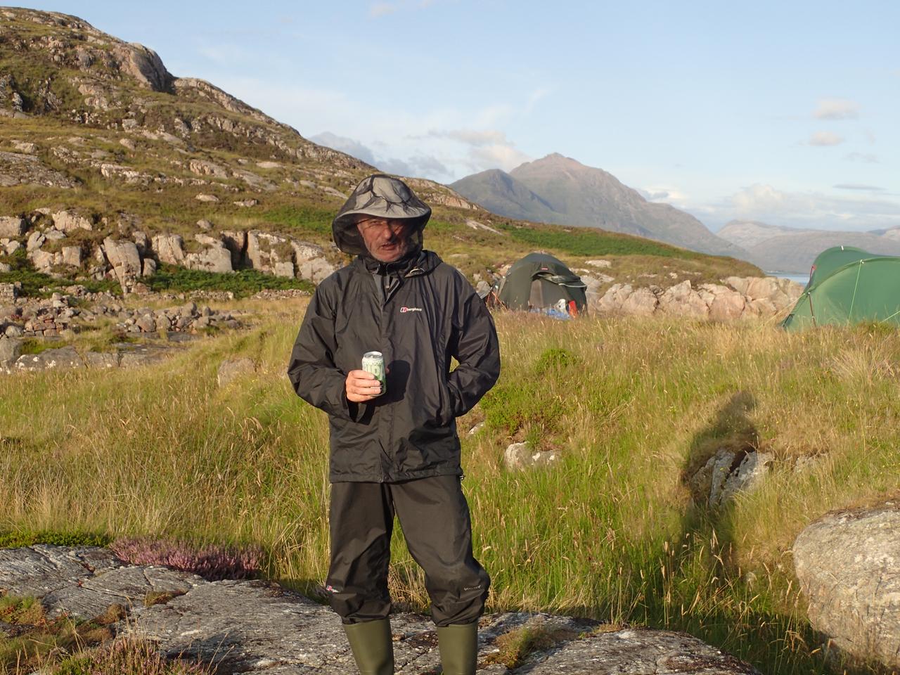 Our campsite was excellent and the weather improved for the evening but as the wind dropped the midges appeared as usual.