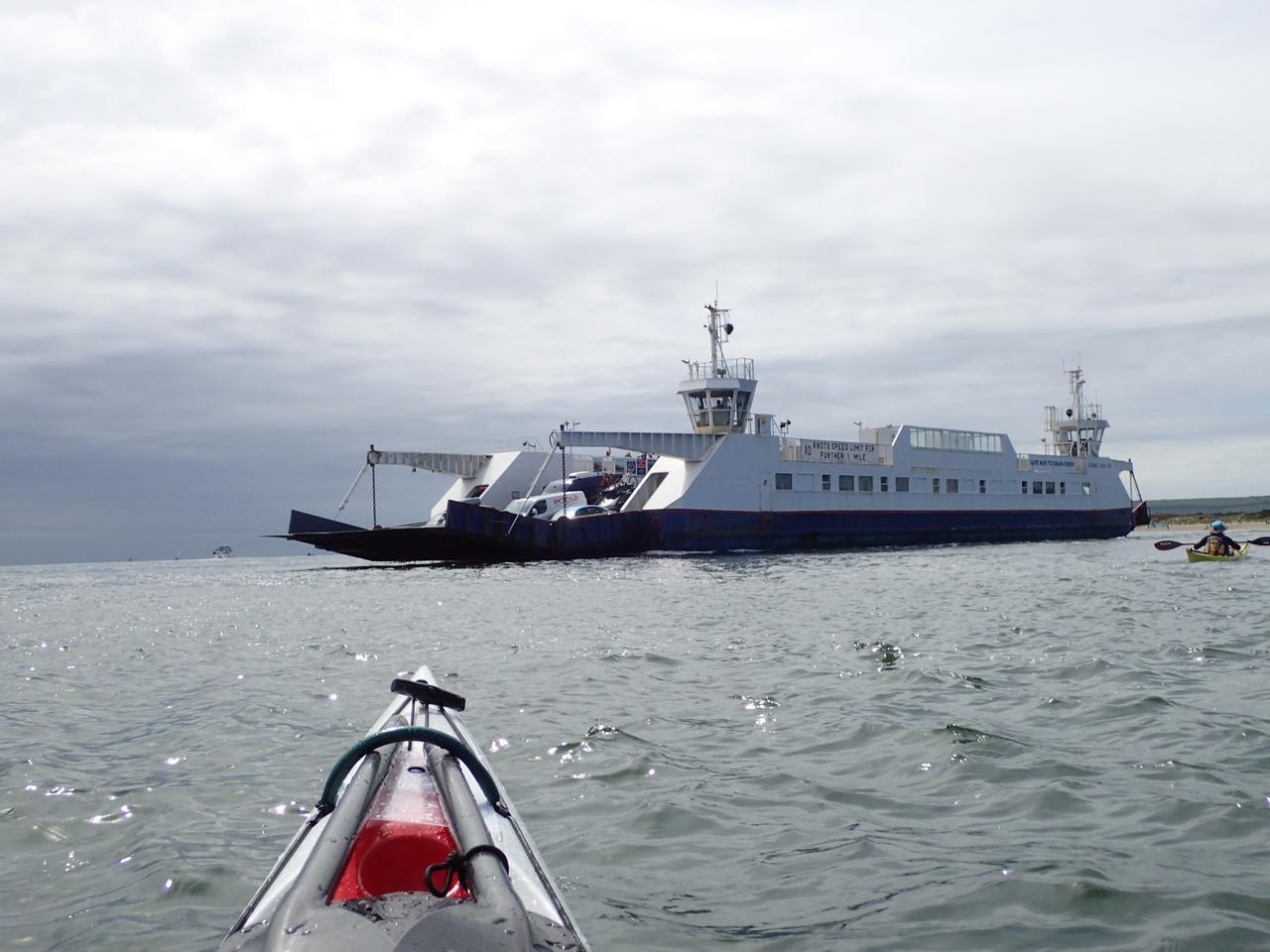 The tide was ebbing and the four of us approached the narrow entrance to the harbour and the sandbanks ferry