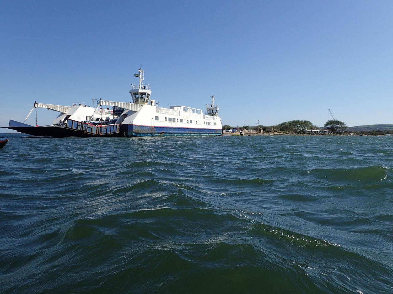 We decided to go behind the ferry but it meant a quick sprint as we were carried towards it by the accelerating flow through the entrance. Dave related that on one occasion a dinghy had been swept clean underneath the ferry!