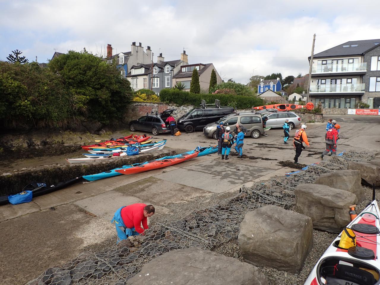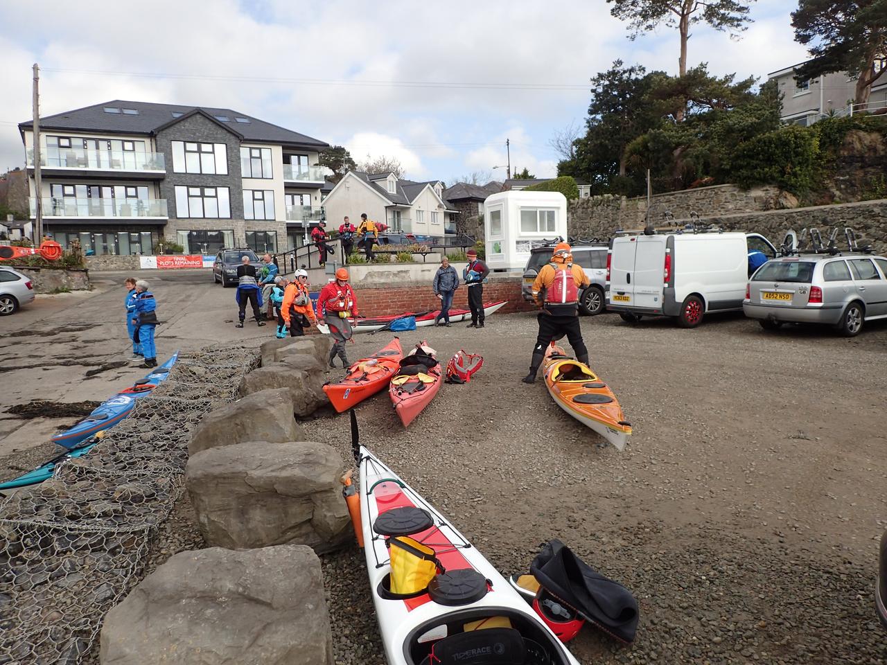 The slipway and car park at Menai Bridge was inundated with sea kayakers.