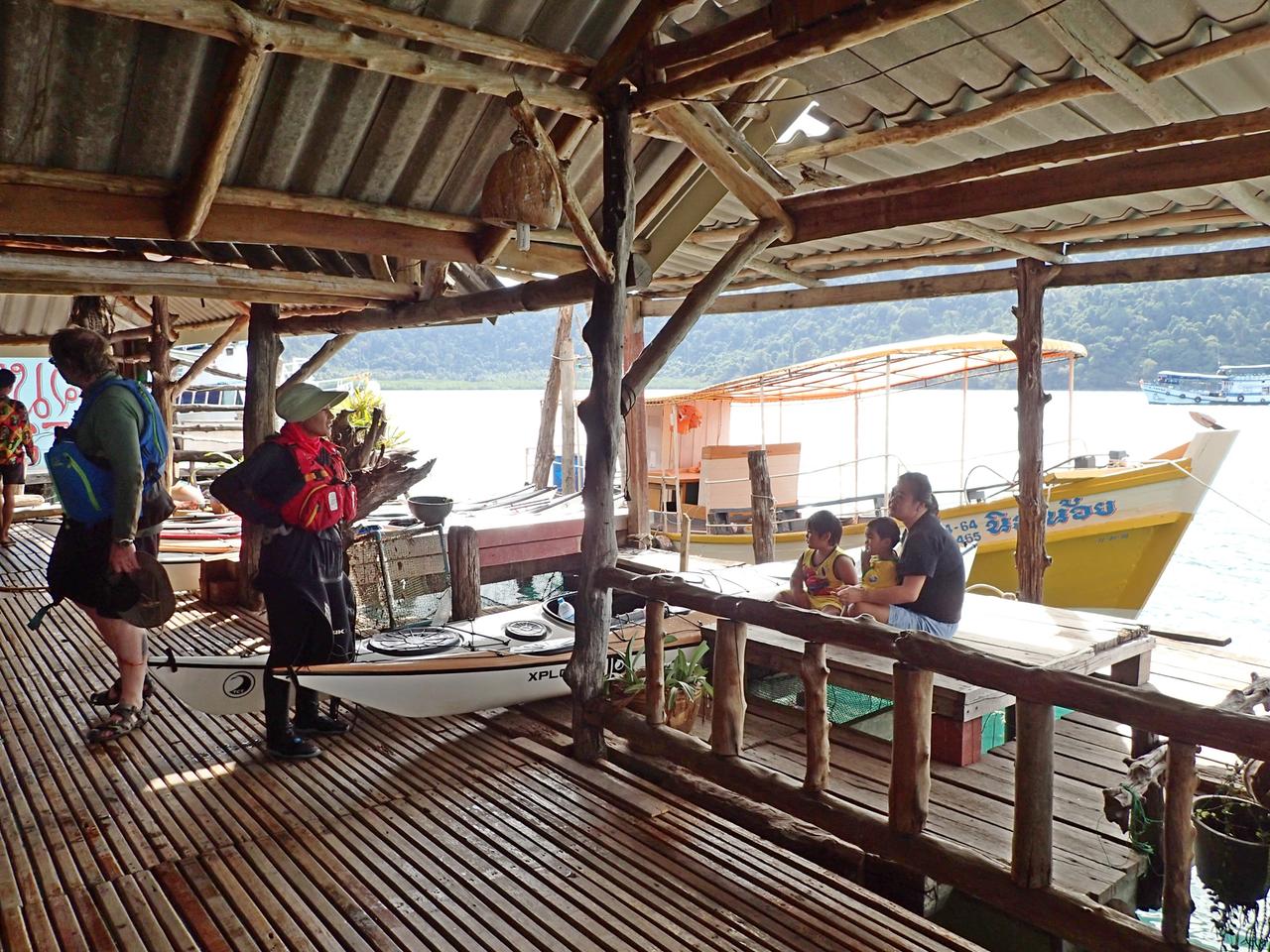 The kayaks had to be lifted over the boat to the homestay behind