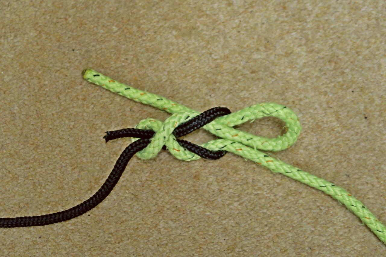 Simple Simon Over with drawloop. This is a secure knot and will release under tension, shown here loose for clarity.