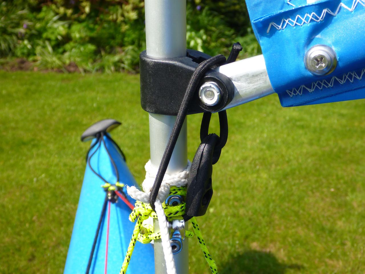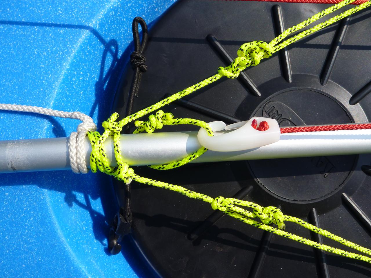 Notice the bungee loop and hook to ensure the mast will not come off the sail.