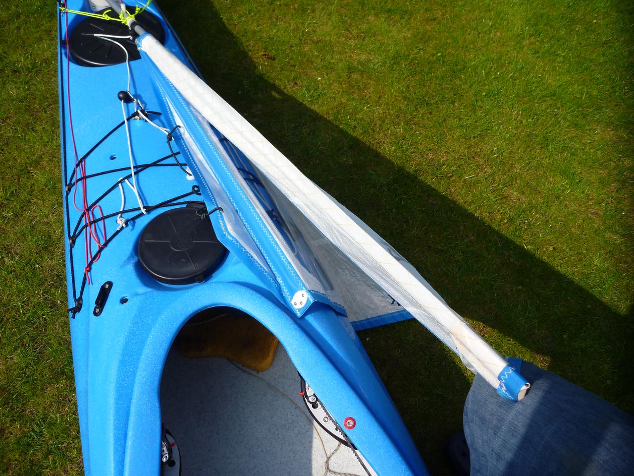 The setup is working well, it's been used up to force 5 but not really beyond that yet. I reckon the side stays are the crucial part of the design. Consider a regular sailing yacht, there are literally tons of tension in the side stays and the mast is supported by a pillar that connects with the bottom of the boat. The problem is that on the FEKS design the sail is mounted well forward at a narrow cross section on the kayak. The side stays really need to be nothing less than as wide as the boat cross section at that point and also to be attached higher up the mast - the rigging is designed to suit the sail. An alternative mast / sail combination might not use side stays at all but instead be